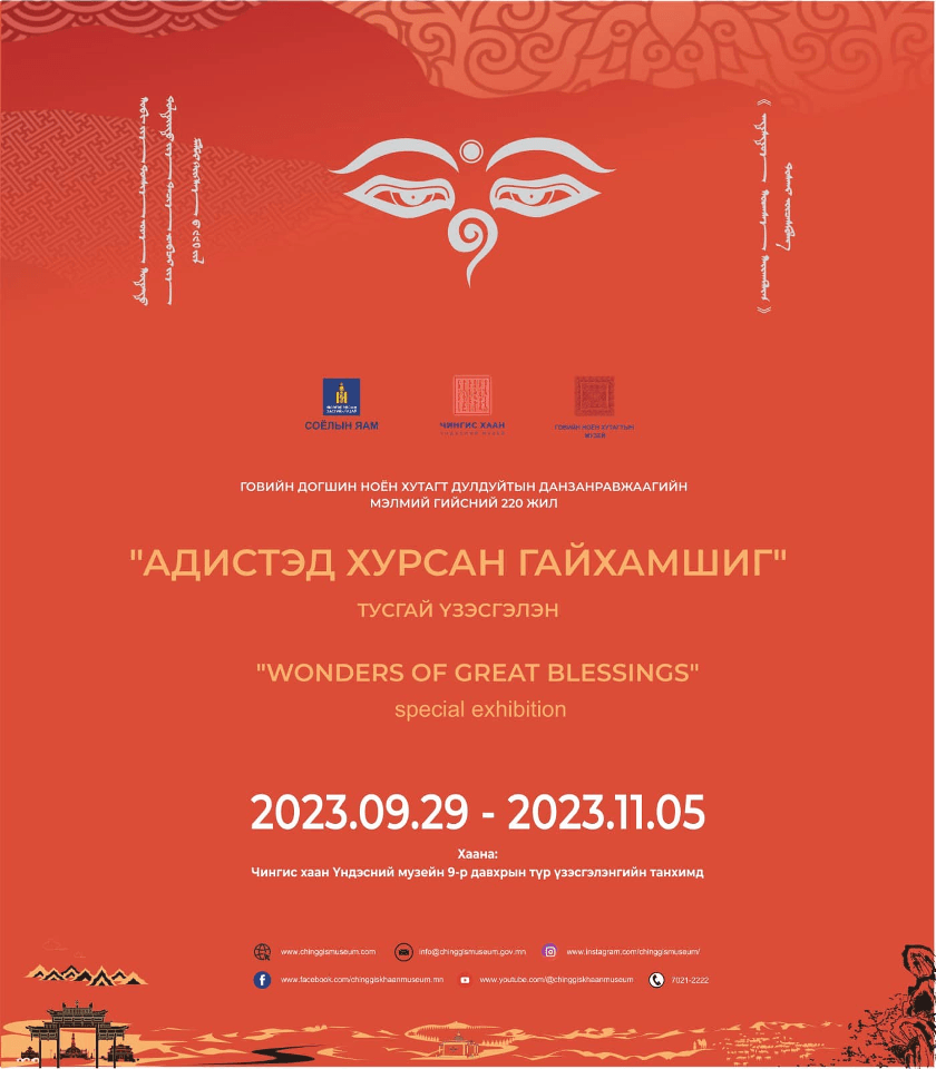 Нэрт соён гэгээрүүлэгч Говийн ноён хутагт Дулдуйтын Данзанравжаагийн мэлмий гийсний 220 жилийн ойг тэмдэглэн өнгөрүүлэх тухай Монгол Улсын Засгийн газрын 212 дугаар тогтоолын дагуу 2023 оны есдүгээр сарын 29-нөөс 11 дүгээр сарын 05-ны өдрүүдэд Чингис хаан Үндэсний музейд “Адистэд хурсан гайхамшиг” тусгай үзэсгэлэнг олон нийтэд толилуулахад бэлэн болоод байна.